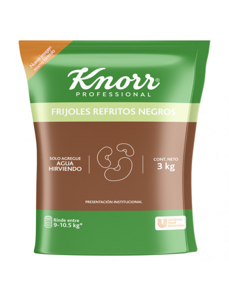 Frijoles refritos negros, hechos de semillas de frijol saludables y crudas, cocidas, mezcladas con sal y grasa de cerdo, extruidos y deshidratados. Su modo de preparación es solamente agregar agua hirviendo y esperar el tiempo indicado en el empaque.